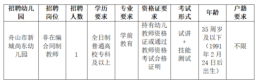 - 舟山市新城尚東幼兒園招聘公告